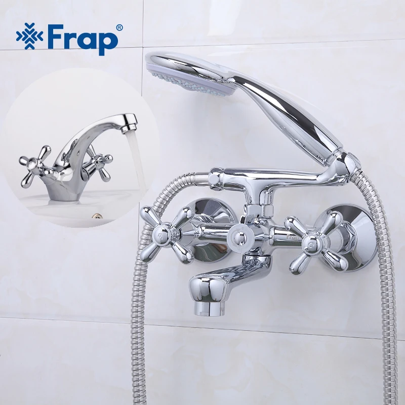 Frap Shower Bath Faucet Cold and Hot Water Mixer Silver Bathroom Basin Faucet Mixer Double HandleBa